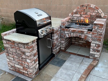 赤レンガでBBQサイトを造り、グリルをビルトインしました。